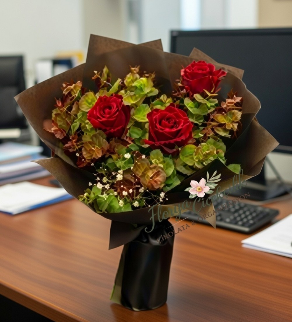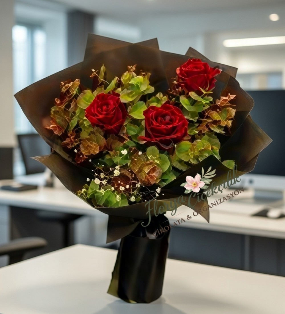 3 Kırmızı Gül Buketi | Üç Kırmızı Gül Aşk Buket