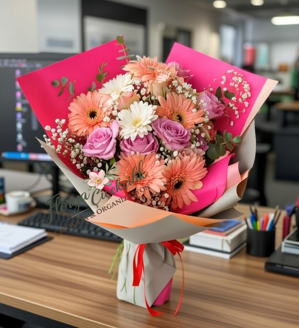 Pembe Gerbera & Gül Buketi | Neşe Dolu Zarif Hediye Buketi