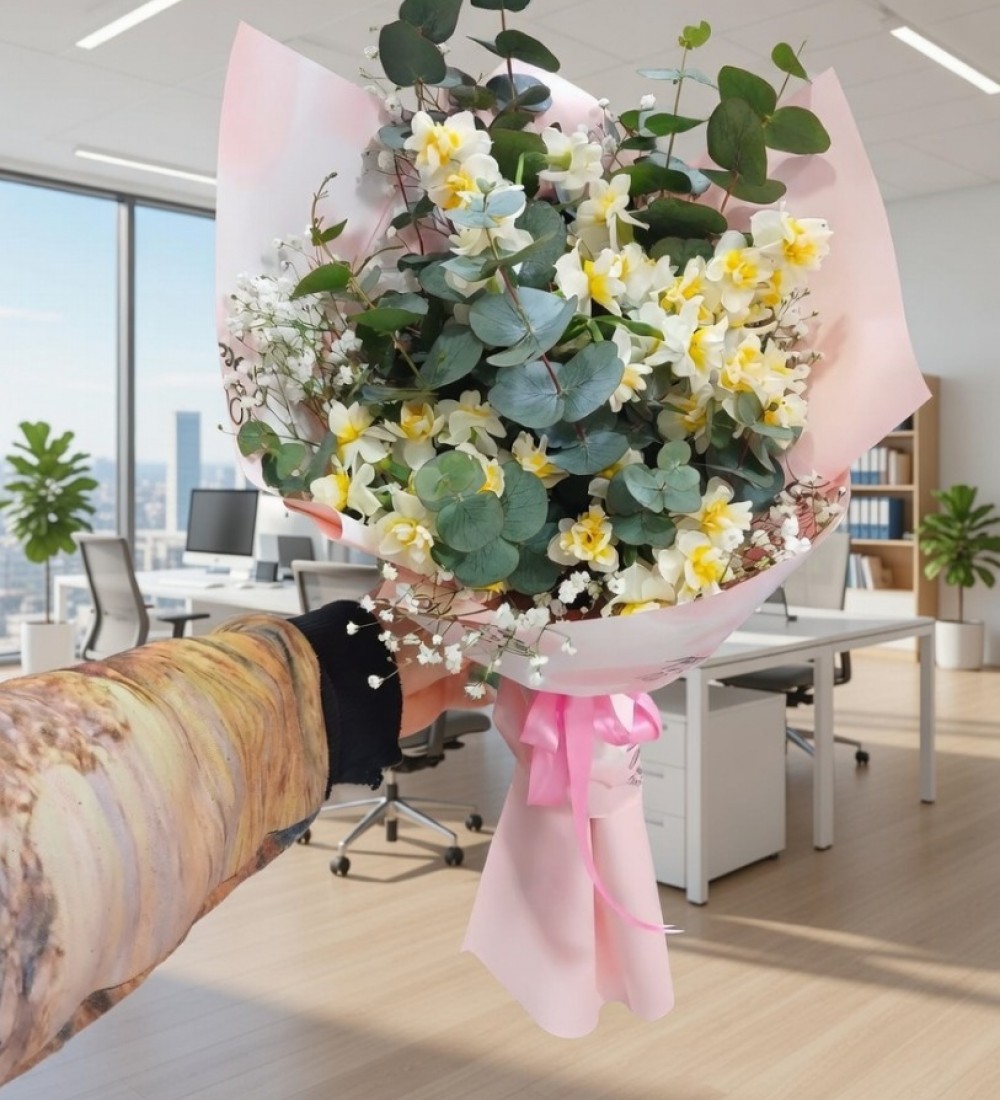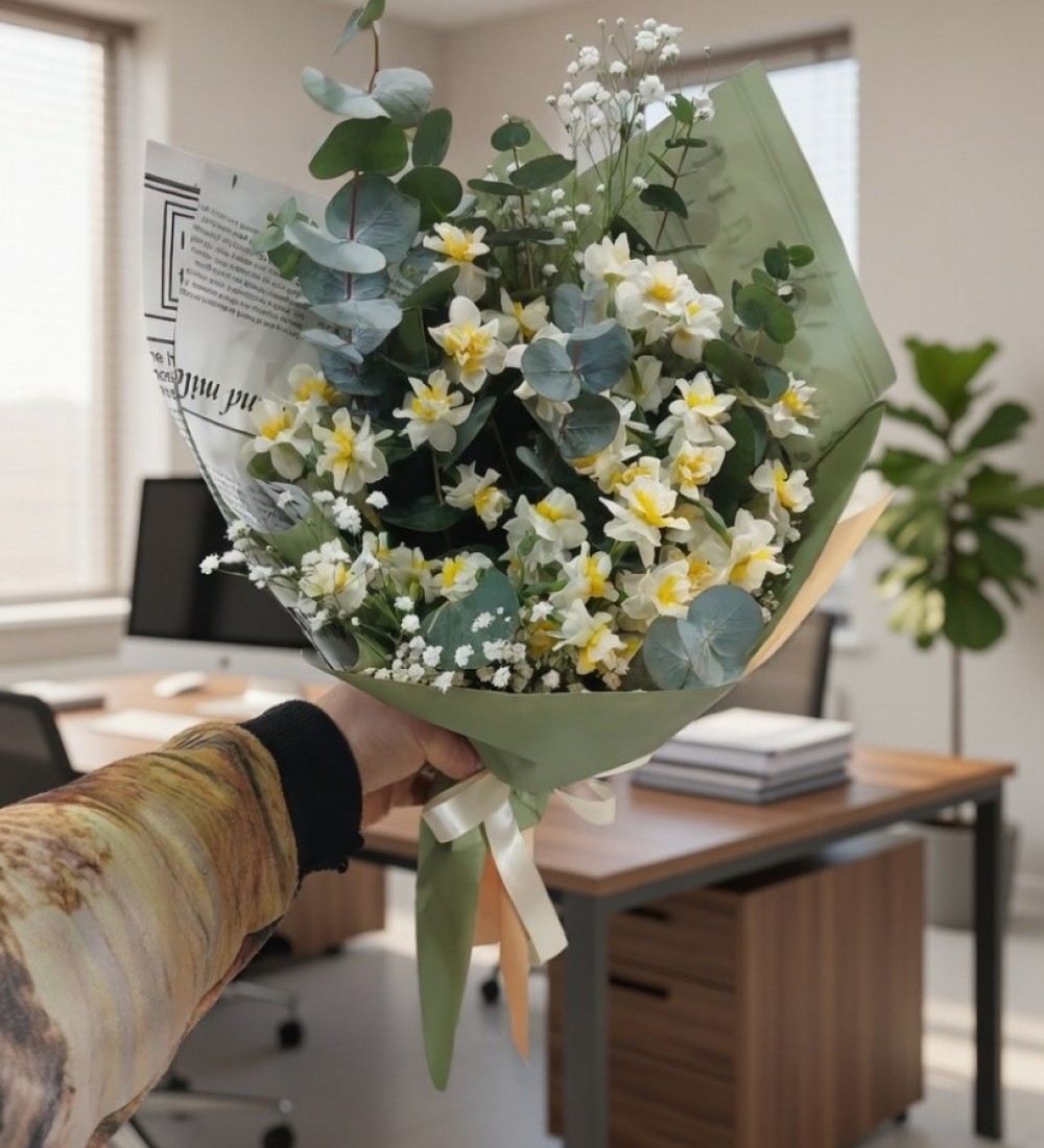 Doğal zarafetin tanımı: Beyaz nergis Eucalyptus
