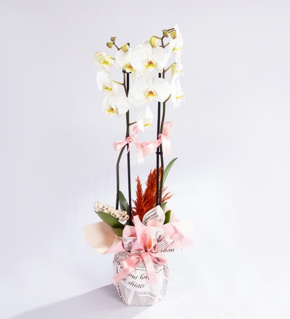 İkili Beyaz Orkide | Çift Dallı Beyaz Orkide Hediye