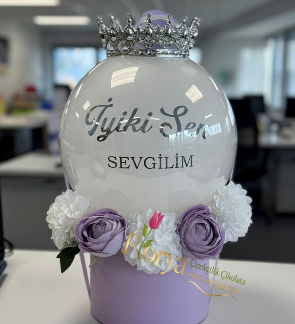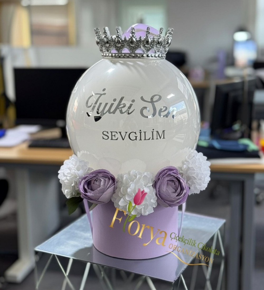 Lila Kutuda Balon ve Çiçek